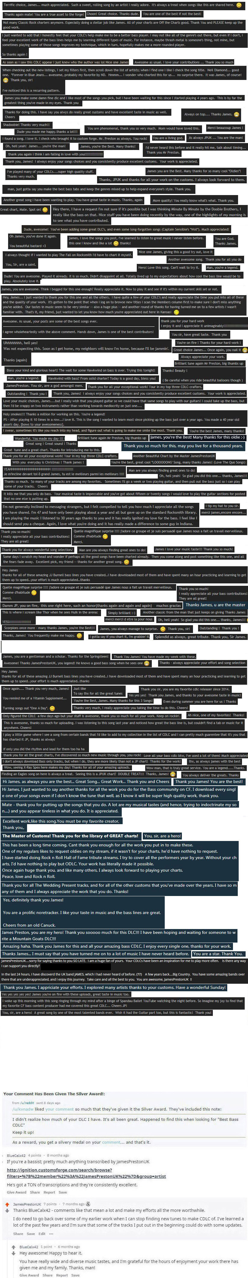 Just some of the comments about the tracks I've posted on CustomsForge over the years: